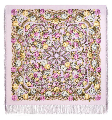 Wrap yourself in the timeless elegance of the Pavlovo Posad 2000 scarf, a versatile piece that transcends seasons. This 49” square scarf, titled "Potselui 2000-15," features a vibrant tapestry of pink, yellow, green, and pale blue hues, adorned with a delightful floral pattern that captures the essence of nature.