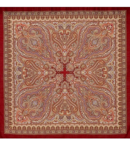 Wrap yourself in the warmth and elegance of this Pavlovo Posad merino wool scarf, a versatile accessory that offers a vibrant touch of nature-inspired beauty to any ensemble. The scarf features a delightful herbal pattern with leaves and flowers, its rich red and peach hues lending an inviting charm. With a square style and luxurious fringe accents, this Russian-made shawl is a testament to timeless design and comfort.