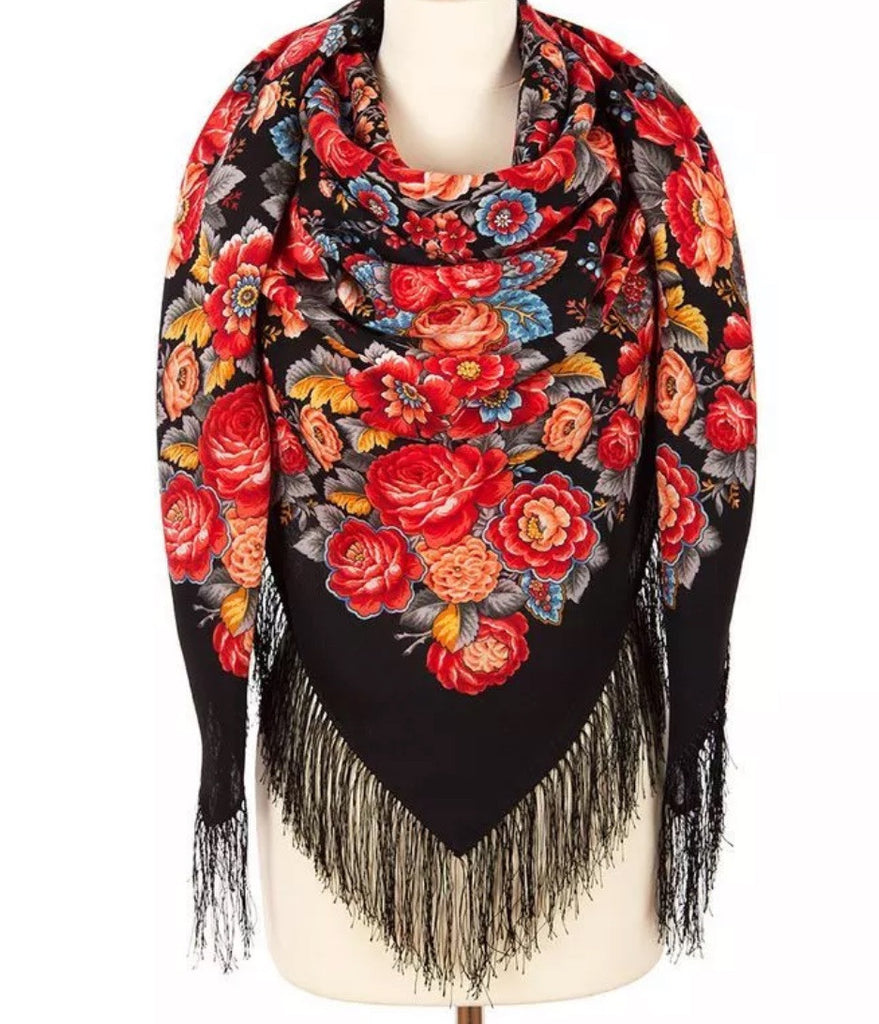 trends. This large Pavlovo Posad scarf is not just an accessory, but a real