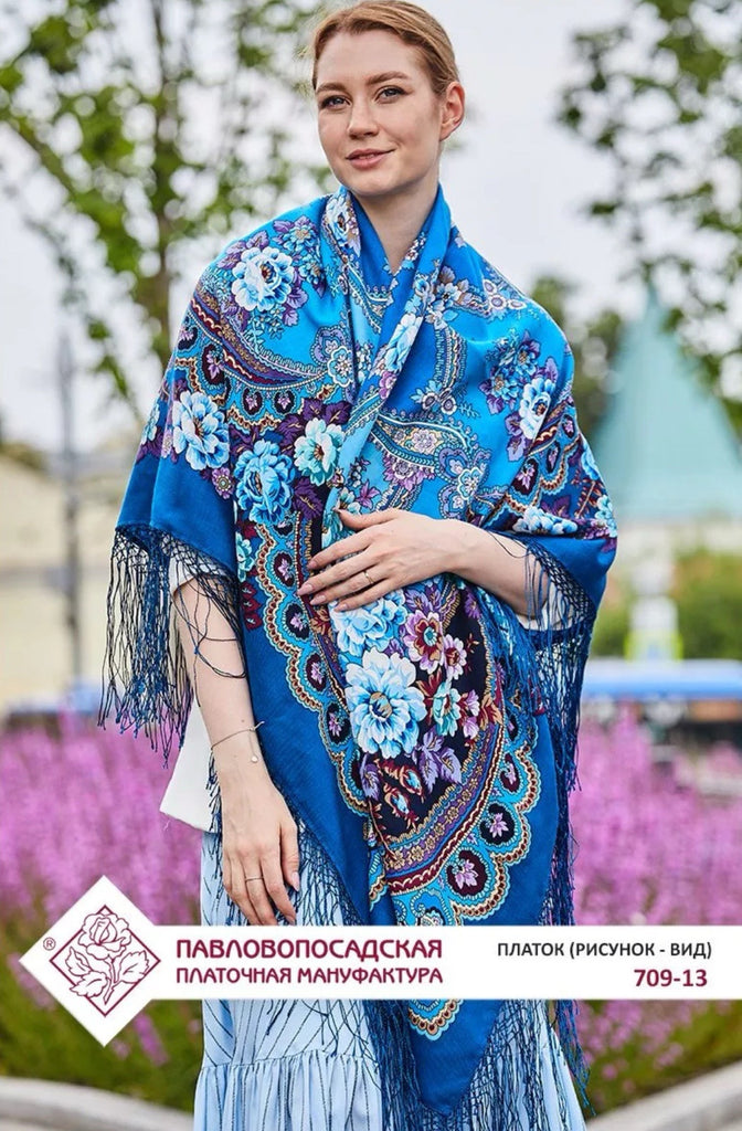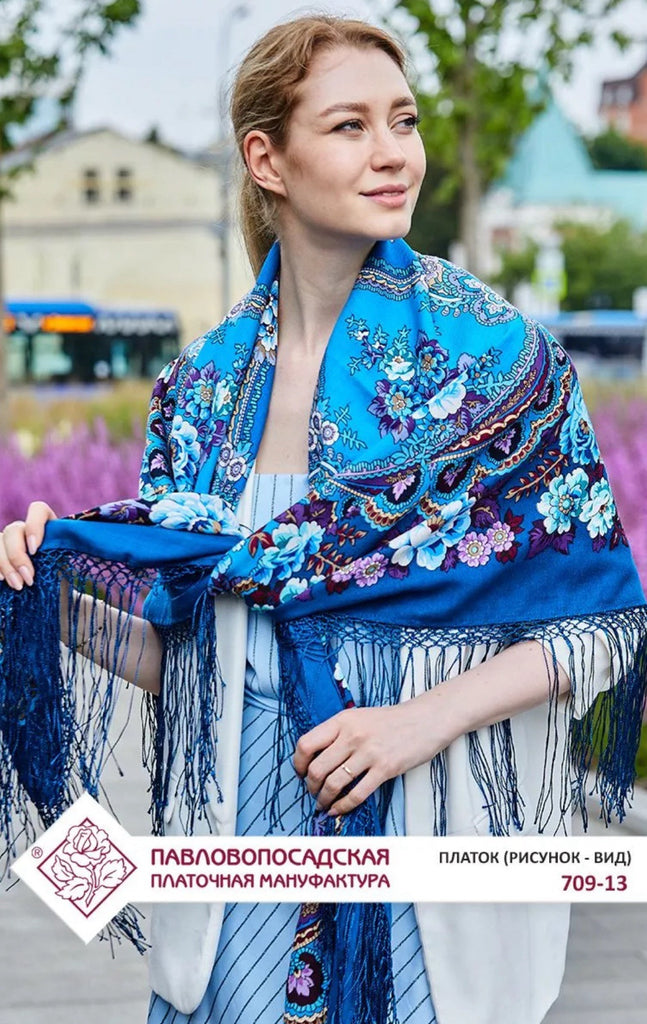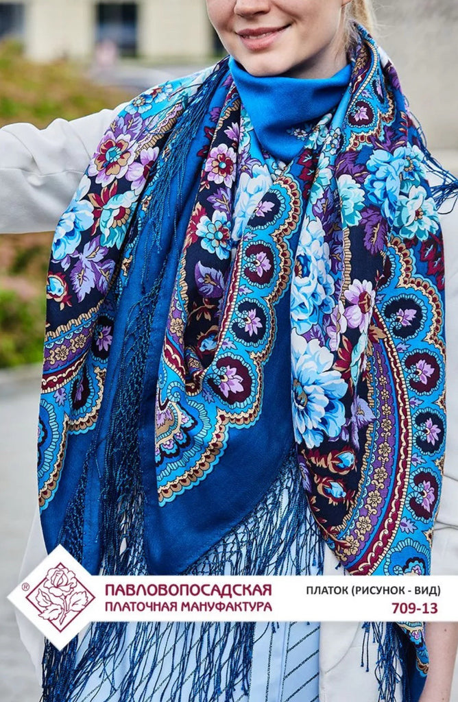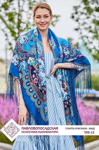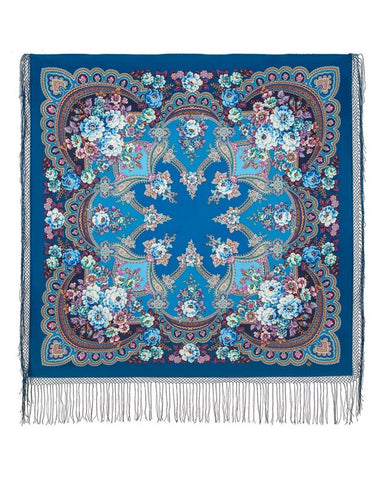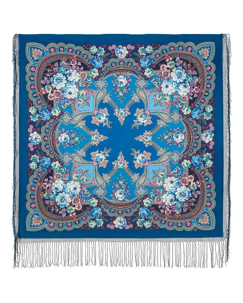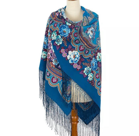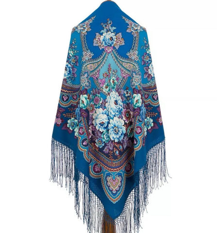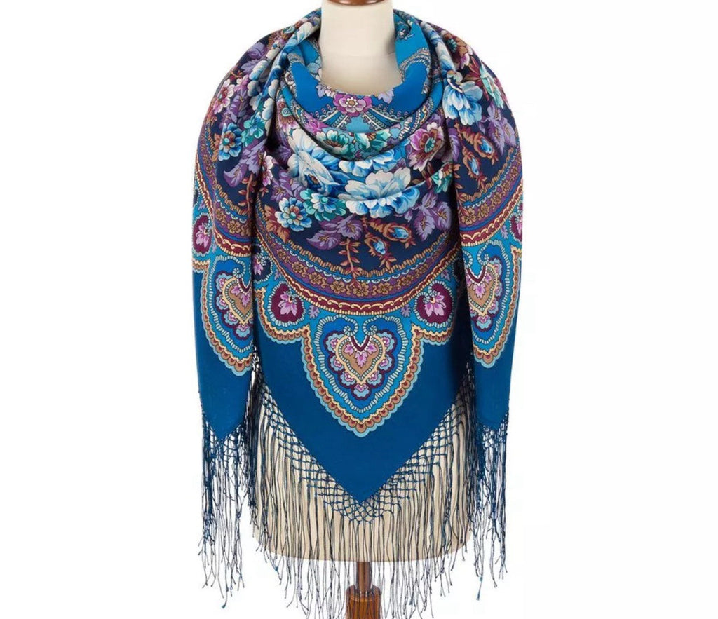 Wrap yourself in the warmth and elegance of this 58'' extra-large Pavlovo Posad scarf, a stunning accessory that boasts a vibrant blue and purple palette with a beautiful floral pattern. Crafted from luxurious merino wool, it promises to provide both comfort and style, whether draped over your shoulders or tied in a chic knot.