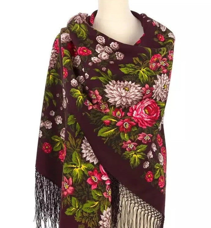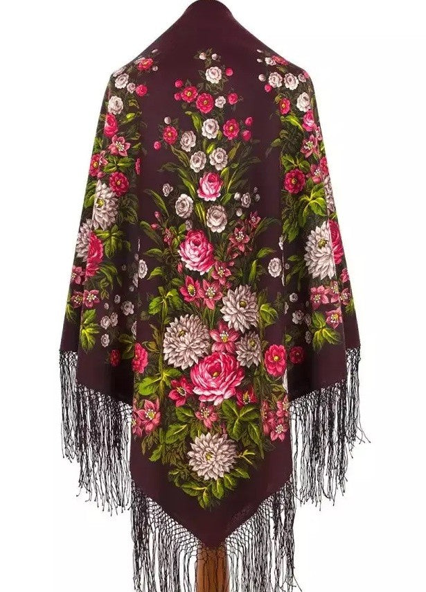occasion, its elegant burgundy wine base with pink, light purple flowers and olive green leaves with Slavic