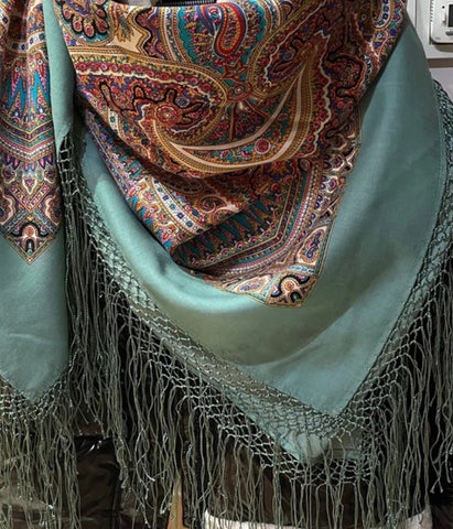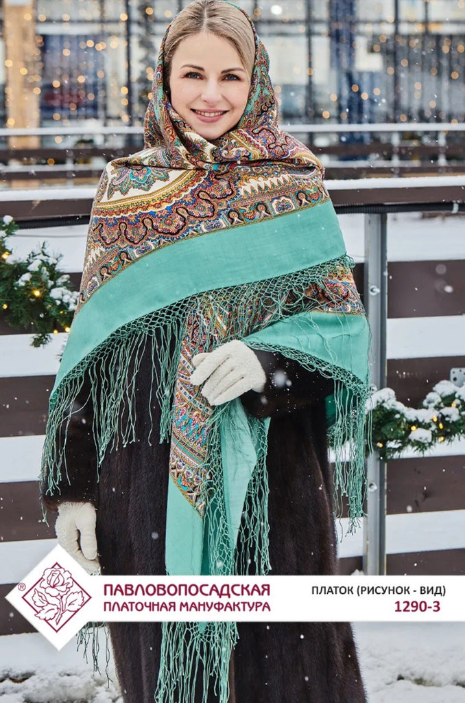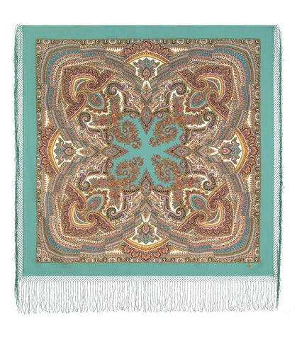 Wrap yourself in the warmth and elegance of this expansive 58'' square scarf from Pavlovo Posad, a testament to Russian craftsmanship. The extra large wrapping scarf is a stunning blend of turquoise, pink, and yellow hues, adorned with a vibrant floral pattern that captures the essence of nature. Its 100% merino wool composition ensures comfort and durability, making it an ideal accessory for any season.