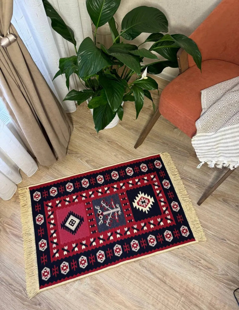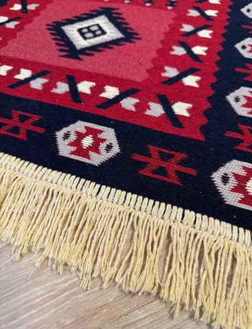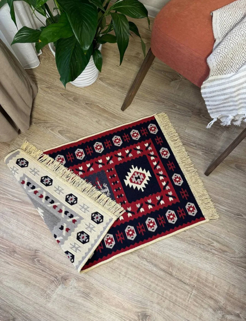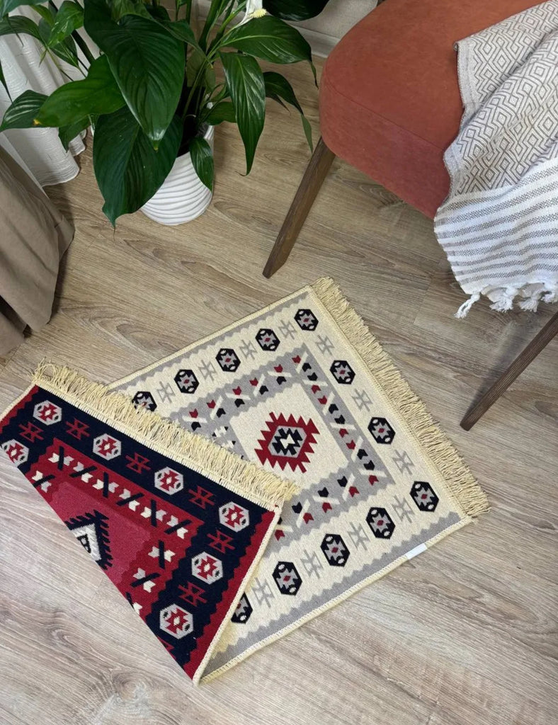Two looks in one! This farm house reversible carpet flips between bold red tones and elegant beige-gray, giving you instant style flexibility. The polyester-cotton blend keeps it durable and easy to maintain, while traditional ethnic ornaments add authentic cultural character to your space. Rotate it whenever inspiration strikes.