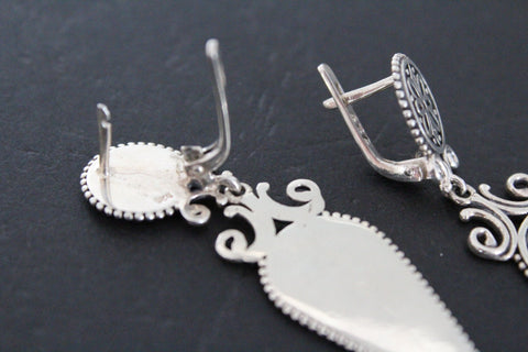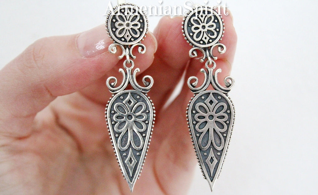 Upgrade your boho style with our 925 sterling silver earrings from our jewelry shop. These intricate earrings feature Armenian patterns and are perfect for both long and short hair. Grab attention with their eye-catching dangle when wearing an open neckline. Elevate your look with the best jewelry on the market. Find the perfect jewelry for any occasion on Armenian Spirit! With high-quality pieces and free worldwide shipping, our store is the top choice for gifts. Plus, enjoy discounts and shop confidently at our reliable store. Shop now and elevate your style!