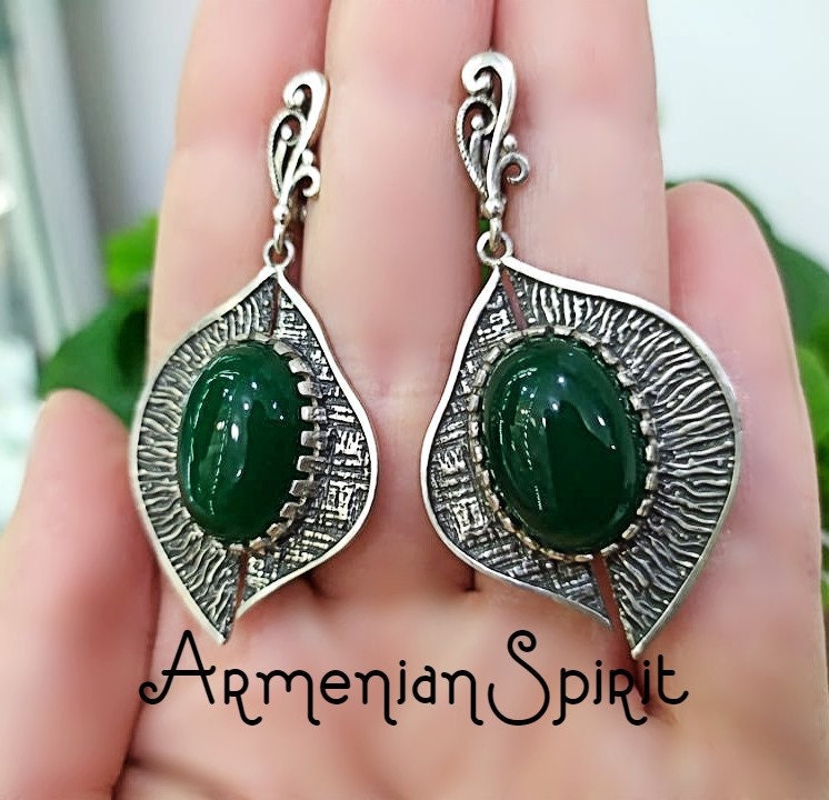 Indulge in the exquisite beauty of Armenian jewelry from the high-quality Armenian Spirit store. These stunning 925 silver earrings feature a delicate leaf design adorned with green quartz, perfect for those who love nature-inspired pieces. Stand out with this unique and beautiful earring, also makes for a great Christmas gift for the ladies in your life.