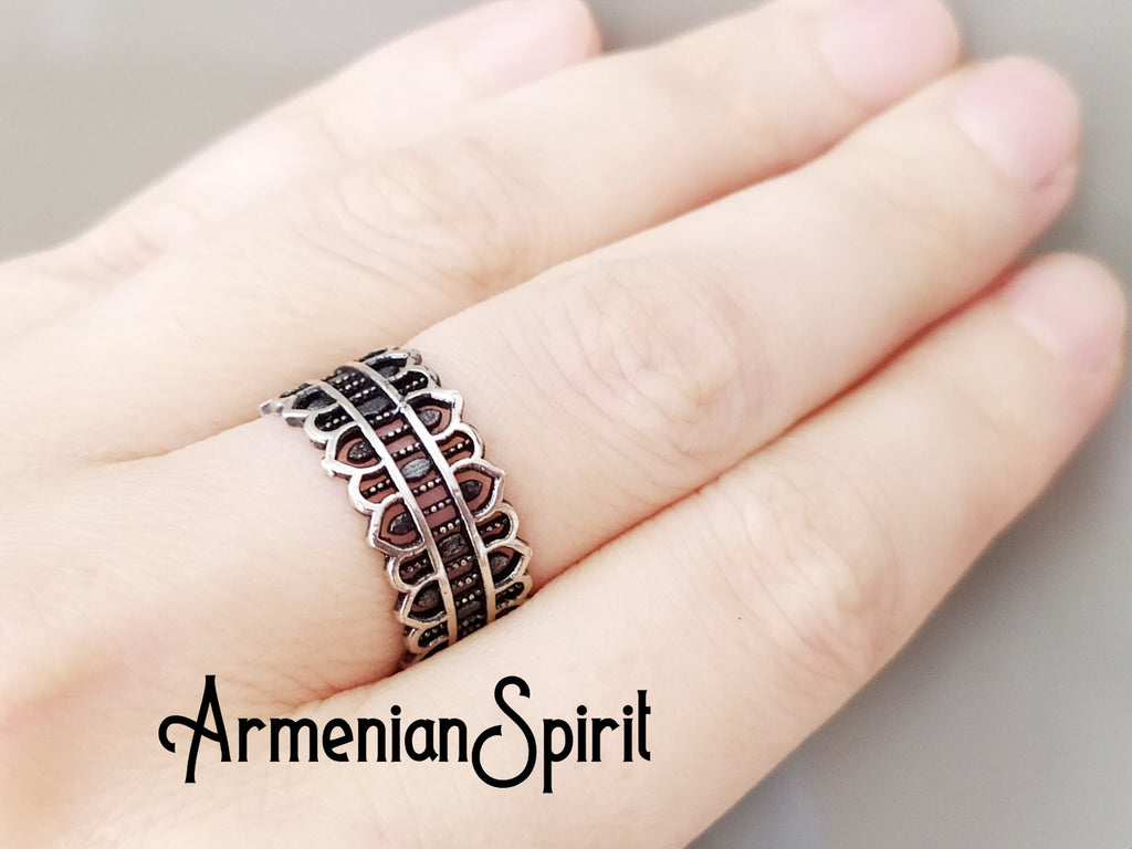 Show off your unique sense of style with our Armenian Spirit jewelry collection! Our adjustable band ring, made of high quality sterling silver 925, features a simple yet elegant design that is perfect for any occasion. Suitable for both women and men, this black ring is sure to make a statement and make a great gift from our best store on Etsy! Discover the perfect jewelry for your sensitive skin at the Armenian Spirit Etsy store. Our pieces are crafted with materials that won't cause irritation, and we offer free worldwide shipping with a tracking number. Plus, enjoy discounts on your purchase. Find your next favorite piece today!