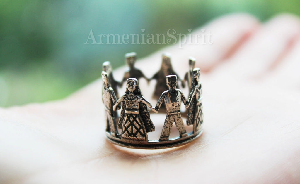 Discover the beauty of Armenian culture with our high-quality jewelry from the Armenian Spirit Etsy store. Our band ring features Qochari dancers, a traditional Taraz design, and is made with 925 silver. Perfect for both men and women, it makes a unique and meaningful gift. Shop online now and embrace Western Armenian traditions! Find the perfect piece of jewelry for your beloved woman at our trusted and top-rated Etsy store. Our hypoallergenic designs are perfect for sensitive skin and with free worldwide shipping, you can buy the best gifts without breaking the bank. Shop now for affordable prices and experience the beauty of jewelry online!
