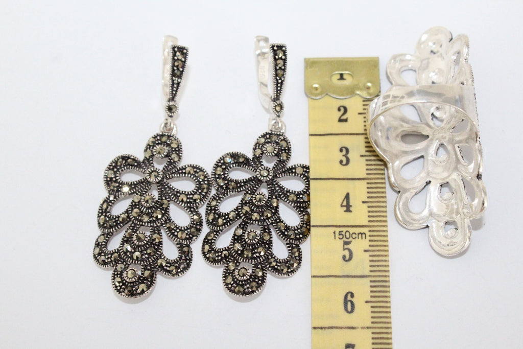 Indulge in the beauty and charm of Armenian Spirit with our stunning peacock tail marcasite earrings. Made with high quality sterling silver 925, these big dangle marcasite earrings are perfect for any occasion. Elevate your style and show your love for Armenian culture with this unique and elegant piece of jewelry.