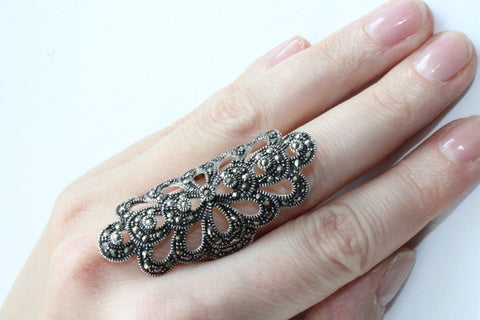 This stunning Armenian jewelry features a big ring design with a peacock tail marcasite embellishment, made of high-quality sterling silver 925. Perfect for any occasion, this full finger cover will make a beautiful gift for any mother. With its intricate design and luxurious materials, it is sure to be a best choice for jewelry lovers. Enjoy the convenience and savings of free shipping on Armenian Spirit. Shop now and add a unique touch of culture to your collection.