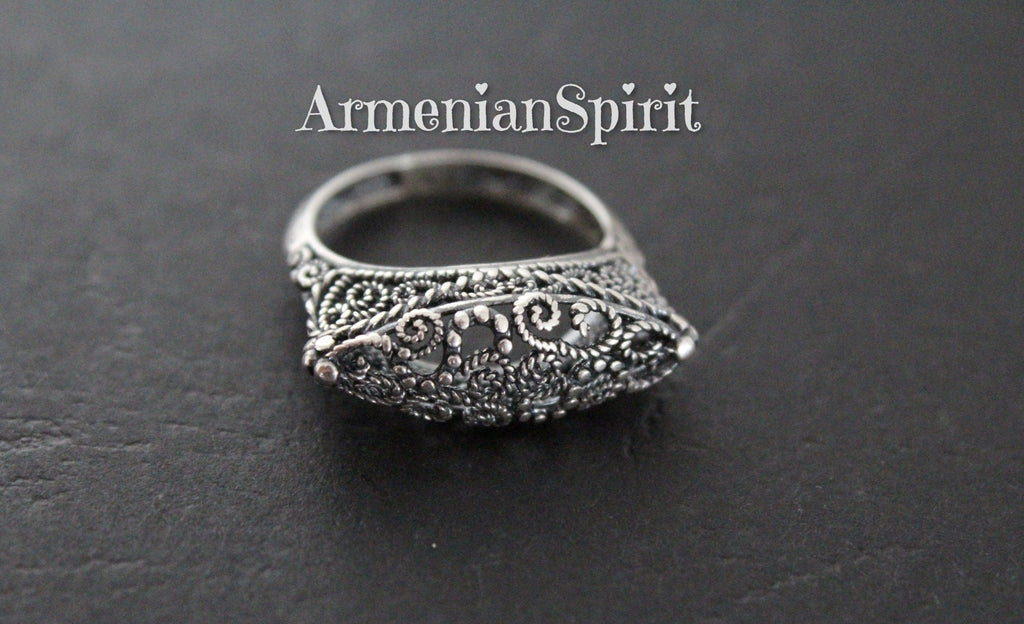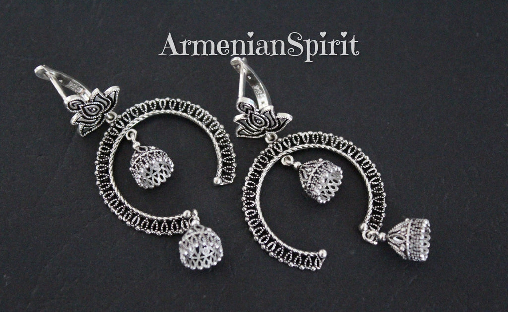 Expertly crafted with intricate filigree designs, our Armenian jewelry set brings elegance and charm to any occasion. Made with sterling silver 925, this set includes a pair of delicate earrings and an intricate ring, adorned with sweet little bells. Elevate your style with the best silver jewelry on Armenian Spirit. Discover the exquisite craftsmanship of Armenian traditional jewelry with the best silver pieces also on ebay. Admire the intricate details and timeless beauty of these handcrafted treasures. Experience the elegance and cultural heritage of Armenia with every piece.