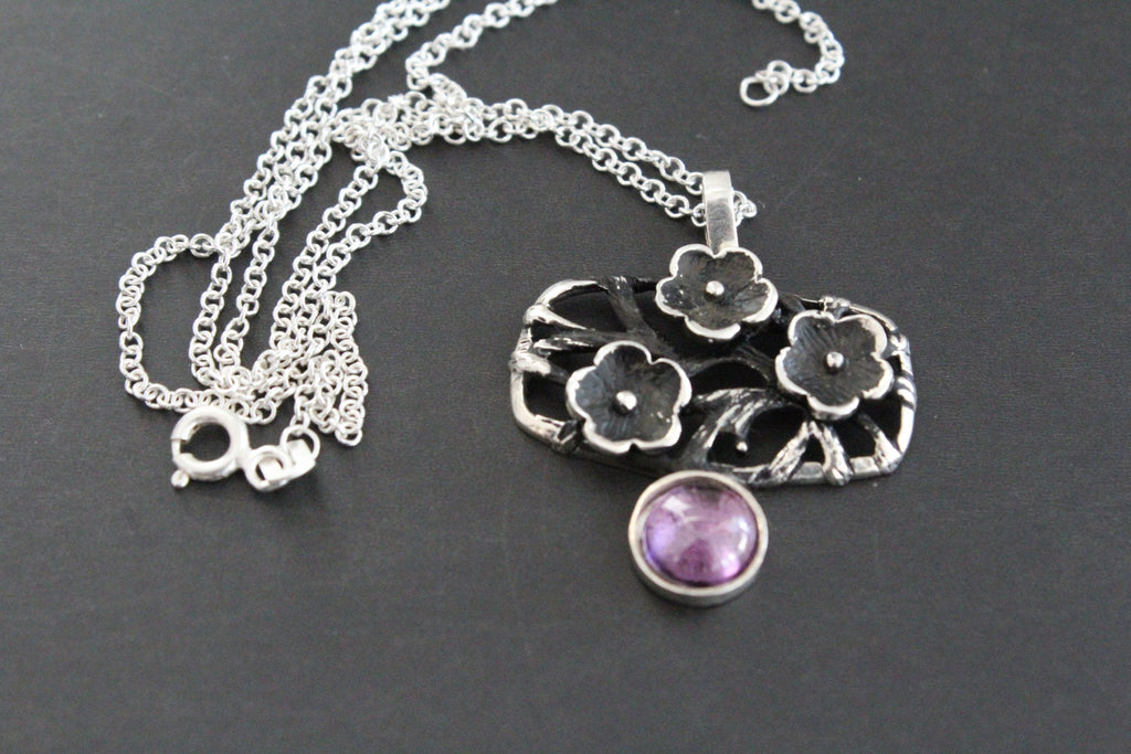 Add a touch of elegance and sophistication to your outfit with our Pendant Silver 925 floral necklace. Crafted with black ozidized silver, this necklace features a stunning purple lab quartz stone. Elevate your style with this unique piece that exudes charm and grace.