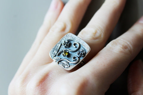 Discover the unique beauty of Armenian handcrafted jewelry with our best silver pieces on Armenian Spirit. Each piece features a stunning rose flower design and is made with high-quality 925 silver and a yellow citrine stone. Adjustable for the perfect fit, these artisan pieces are a must-have for any fashion-forward woman. Discover the perfect accessory for delicate skin with our high-quality, hypoallergenic 925 stamped silver jewelry. With excellent customer reviews and truly handcrafted, one-of-a-kind pieces from Armenian Spirit, you can confidently express your unique style. Enjoy free shipping worldwide and discounts on our top-rated jewelry ebay store.