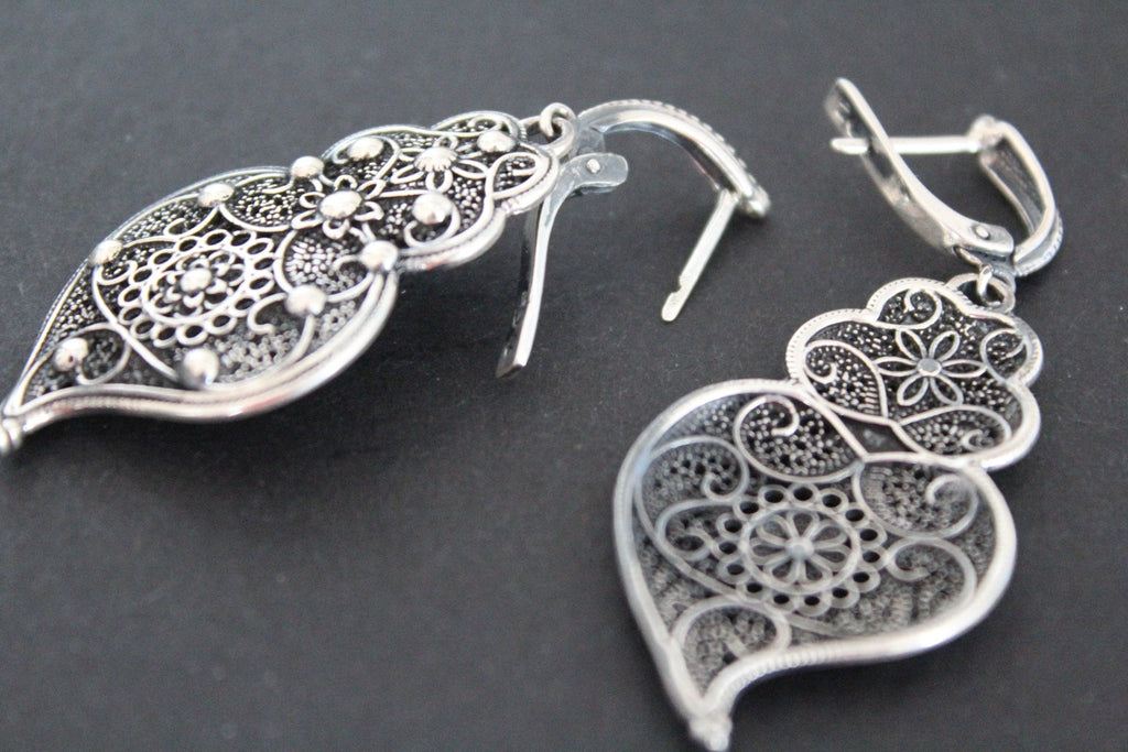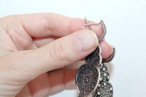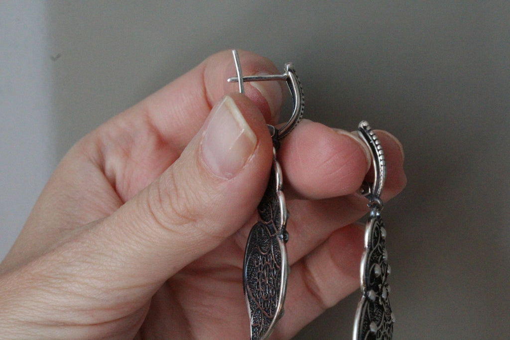 Get the cutest earrings ever with our extra big leaf earrings! These sterling silver 925 earrings are adorned with traditional ethno ornaments, perfect for showcasing your unique style. Stand out from the crowd and make a statement with these charming earrings that reach all the way to your shoulders!Discover the perfect gift ideas in our store! Our jewelry, made of high quality sterling silver 925, is perfect for any occasion. Plus, it's gentle on sensitive skin so you can wear it comfortably all day long. Get beautiful, affordable jewelry today! PAY WITH PAYPAL, MASTERCARD or VISA CARD.