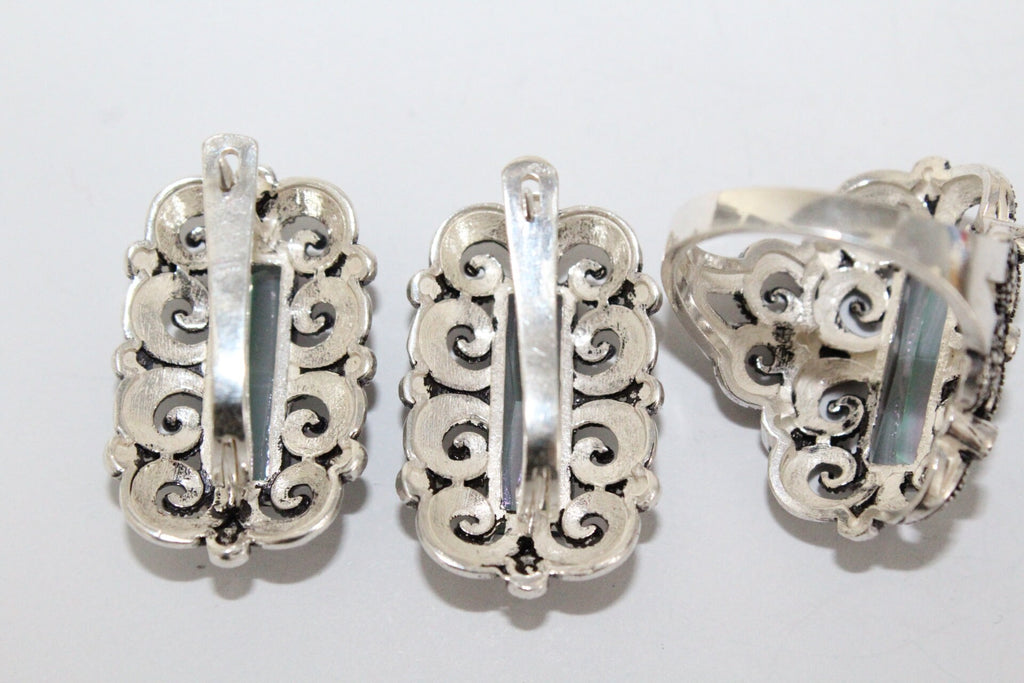 Discover the timeless beauty of traditional Armenian jewelry with our high quality, sterling silver 925 ring. Adorned with a captivating green nacreous stone and Marcasite, this tudor style ring is perfect for weddings or everyday wear. Experience the elegance and luxury of Armenian craftsmanship with our small rings for women. As an industry-leading jewelry store, our pieces are perfect for those with sensitive skin. Our hypoallergenic materials ensure a comfortable and worry-free wearing experience.