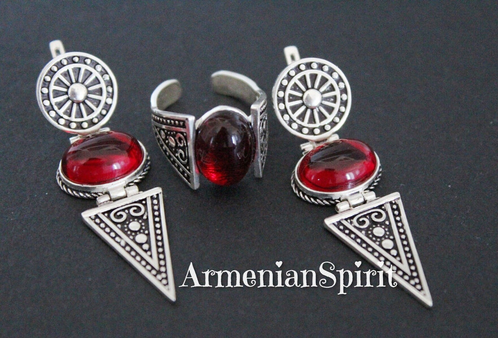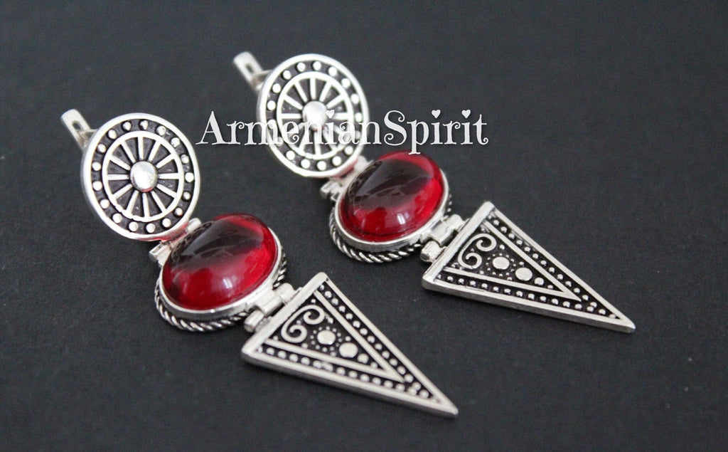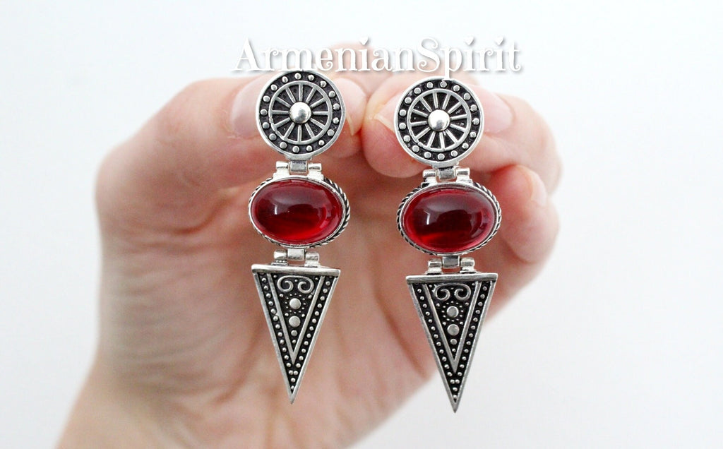 Add a touch of elegance to your jewelry collection with our Armenian Silver 925 long earrings. The red stone oval adds a pop of color, while the ethnic pattern adds a unique and timeless style. As an star seller and top store for gifts, you can trust in the quality and craftsmanship of our jewelry.