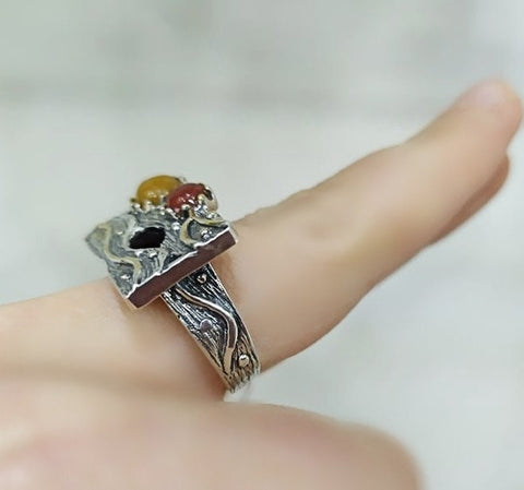 Gemstones: real carnelian (red-burnt orange) and real yellow jadeite.