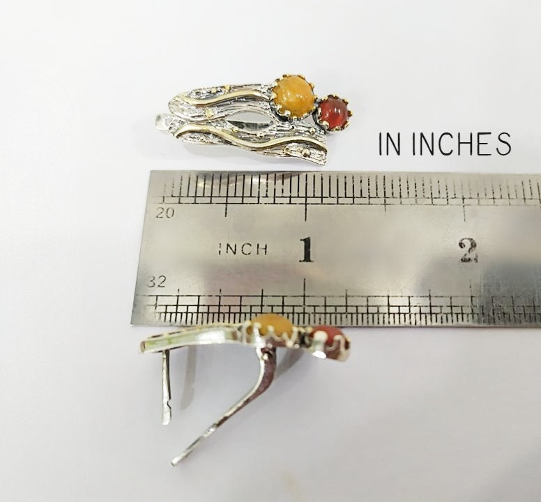 These Armenian jewelry SILVER Earrings are a modern and elegant gift for women. Made with 925 real Gold plating and adorned with Natural Carnelian and Natural jadeite yellow Gemstones, these earrings are the perfect accessory to match any brown and yellow dress. Elevate your style with these unique and beautiful earrings.