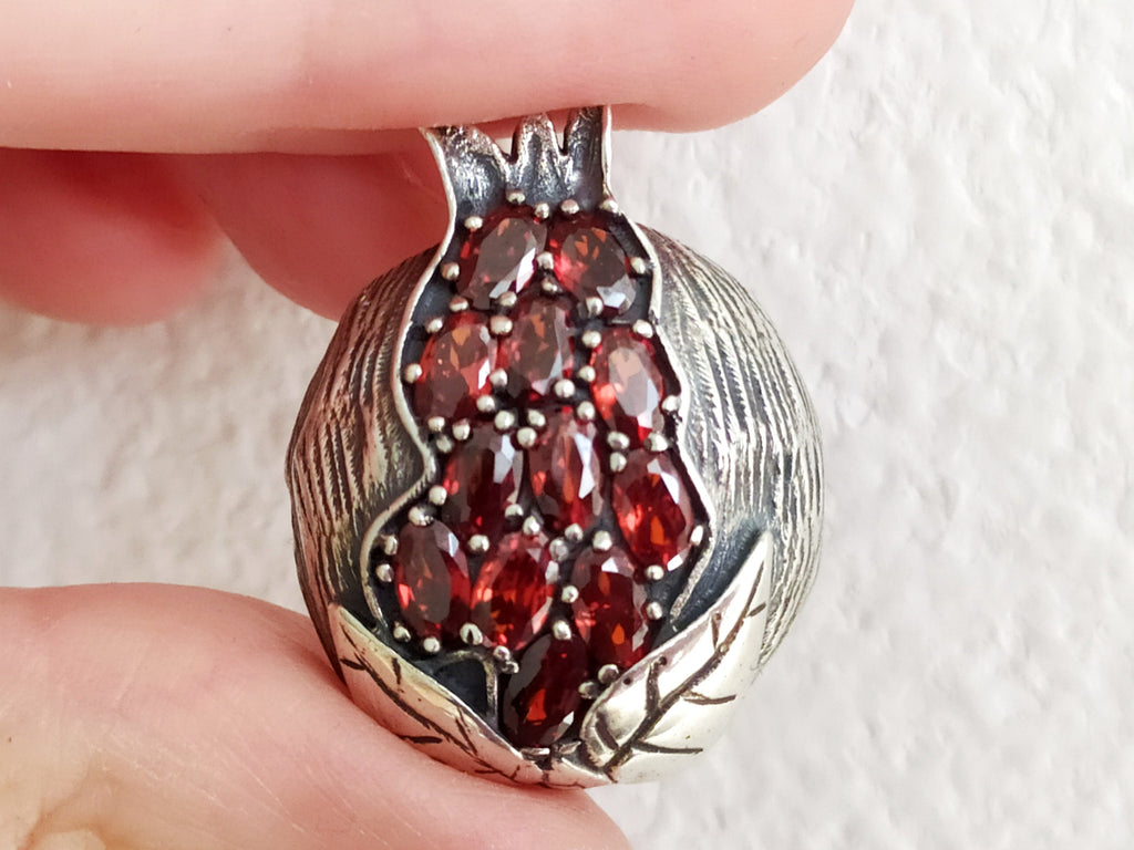 Crafted with intricate details, this Pomegranate Silver 925 Pendant is a true representation of Armenian culture and tradition. The burgundy zircons add a touch of elegance and the taraz symbol of a pomegranate symbolizes prosperity and fertility. A must-have piece from our handcrafted jewelry collection on our Etsy store.