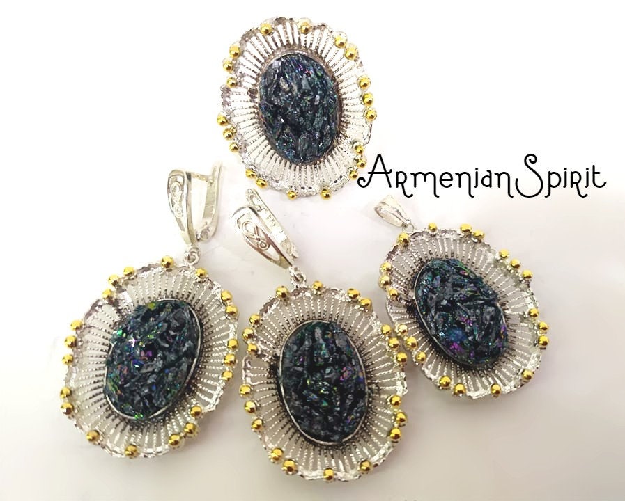 Add a touch of elegance to your jewelry collection with our 925 sterling silver Armenian flower set. Each piece features natural carbide gemstones and gold plated accents, making it a unique and designer addition to any outfit. Explore our Etsy shop and find the perfect ring, earrings, and pendant for yourself or a loved one. Find the perfect jewelry for any occasion with Etsy! Shop online and discover high-quality pieces that will make the perfect gift. Enjoy free shipping worldwide and take advantage of discounts from one of the top jewelry stores. Trust Etsy for the best selection of gifts.