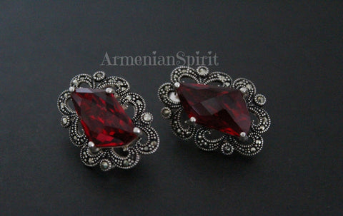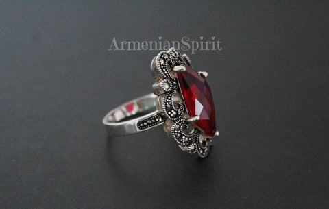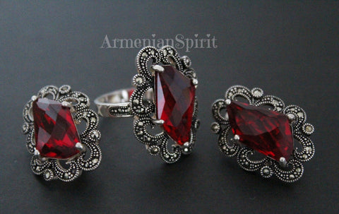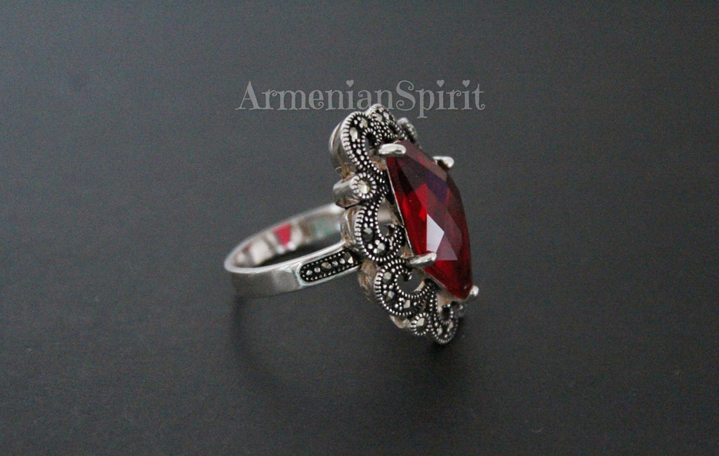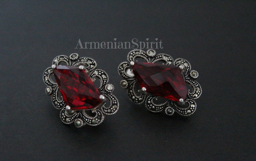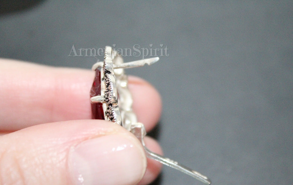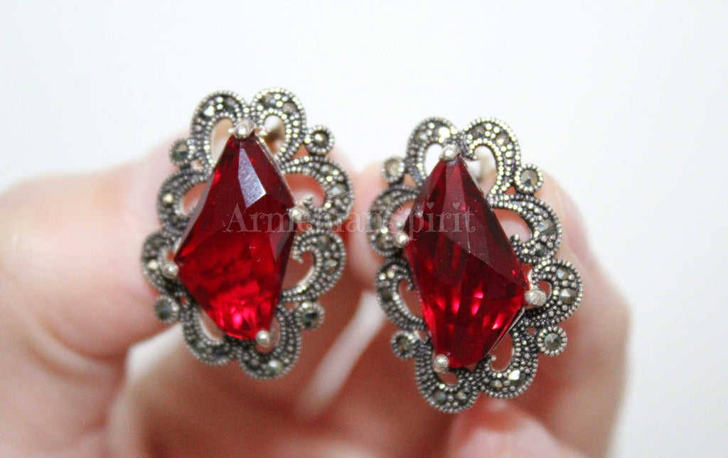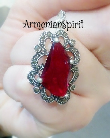 Experience the beauty and elegance of Armenian culture with our high-quality jewelry. Our small marcasite pendant choker is a perfect accessory for any occasion, adding a touch of Victorian, Medieval, or Renaissance flair to your look. Made with STERLING SILVER, this red accessory is the ideal match for your red dress.