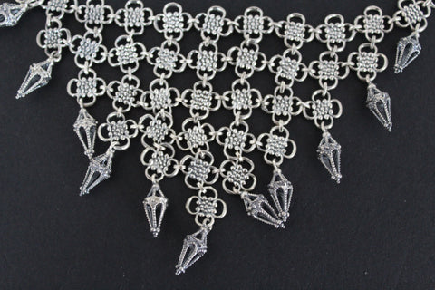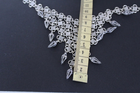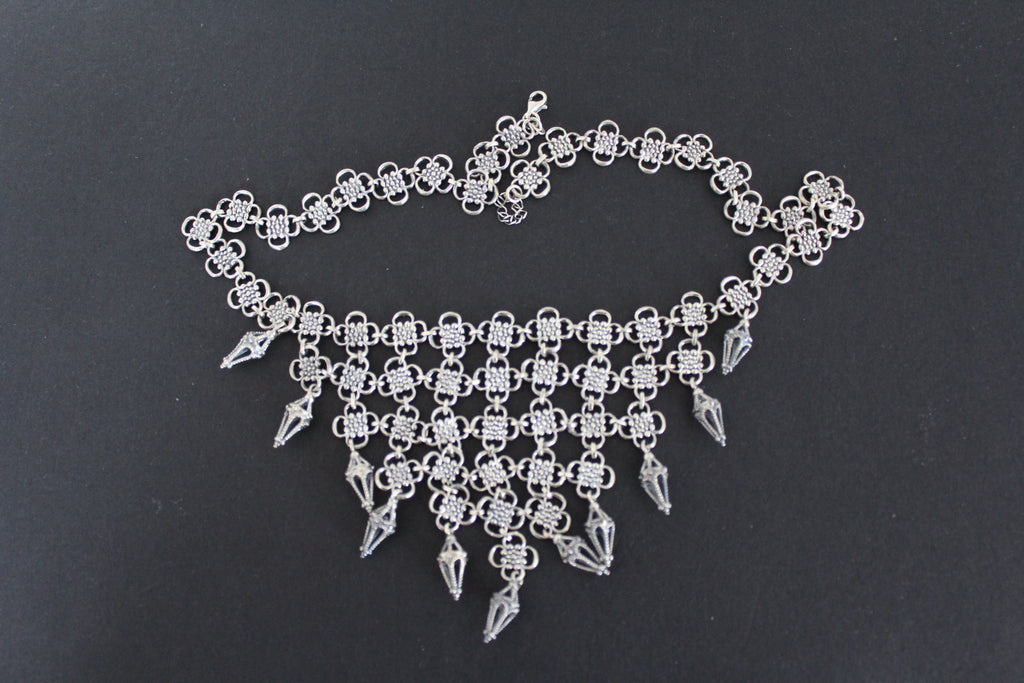 A chic Armenian necklace made in several rows covers the chest, and patterns of beautiful flowers is eye-catching. This necklace is made of 925 sterling silver and would be a welcome gift for a wife who loves precious metals. The necklace is made in the style and traditions of Armenian folk accessories.