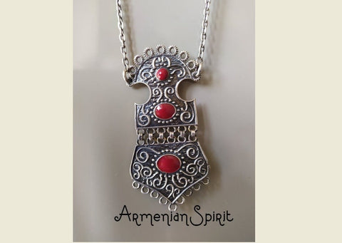 Discover the beauty of traditional Armenian jewelry with Armenian Spirit's high-quality jewelryset. This set features a very large pendant and chain, an adjustable ring, and extra large earrings made of STERLING SILVER 925. Inspired by Vaspurakan in Western Armenia, these traditional pieces will add a touch of roots and culture to your wardrobe. Experience the beauty of hypoallergenic jewelry with this Armenian Spirit top-rated piece. Perfect for sensitive skin, this top-quality piece is trusted by customers worldwide and comes with free shipping. Shop confidently and elevate your style with this unique online find.