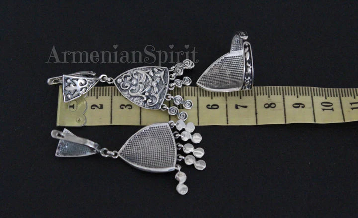 Add a touch of elegance and tradition to your jewelry collection with our gypsy style sterling silver 925 earrings and adjustable ring. Inspired by Western Armenian taraz jewelry, these lightweight pieces feature traditional patterns that will elevate any outfit. Shop now at our store. Find the perfect gift at Best Jewelry store! Our store offers high-quality pieces that are sure to impress. With free worldwide shipping and amazing discounts, shopping for jewelry online has never been easier. Trust our reliable store for all your gifting needs.