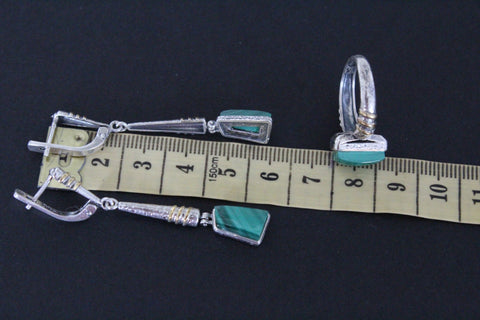 Discover the perfect gift at the best store for jewelry on Etsy, Armenian Spirit. Handcrafted with high-quality Sterling Silver and adorned with striking green malachite gemstones, these earrings and ring exude modern elegance with gold-plated accents. Support small businesses and indulge in unique, stunning pieces. Upgrade your jewelry game with Armenian Spirit's etsy store. Our pieces are perfect for sensitive skin, providing irritation-free wear. Enjoy free worldwide shipping with tracking and exclusive discounts. Elevate your style and comfort today.