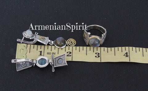 Armenian Spirit offers the best selection of high-quality Silver jewelry on Etsy. These modern earrings feature labradorite and moonstone gemstones, with unique vice versa designs and gold-plated accents. Upgrade your style and express your unique taste with our stunning Armenian jewelry. Discover the perfect piece of jewelry for sensitive skin at the Armenian Spirit store. Say goodbye to irritations and enjoy free shipping worldwide with tracking and discounts available. Let us help you find your new favorite accessory with ease and convenience.