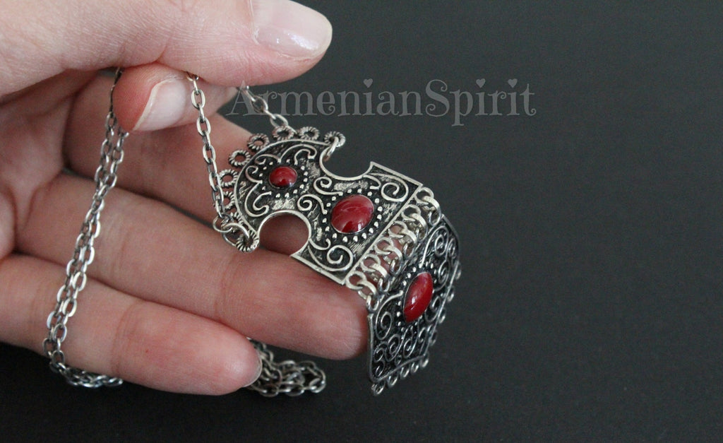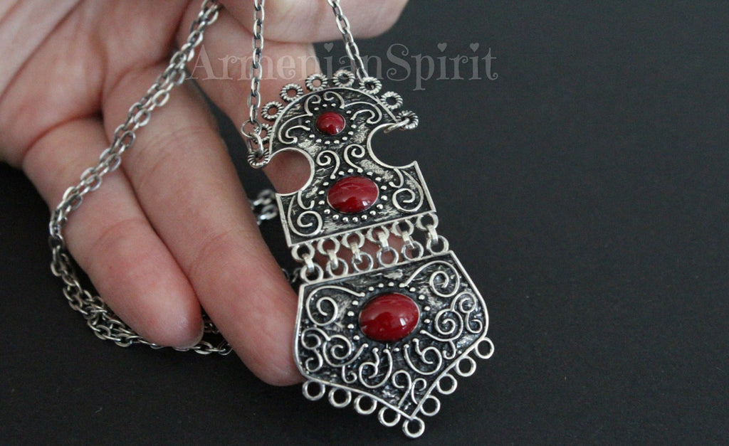 Discover the beauty of traditional Armenian silver jewelry with our stunning pendant on chain purchase! Made with 925 silver, this ethnic necklace features a large, intricately designed pendant that exudes cultural heritage and elegance. Elevate your style and stand out with this beautiful piece of taraz jewelry. Purchase on Armenian Spirit and experience the best in jewelry from the Armenian Spirit store. With free shipping, discounts, and exceptional customer service, you'll find unique pieces that showcase the beauty of Armenian craftsmanship. Shop now and add a touch of culture and elegance to your collection.