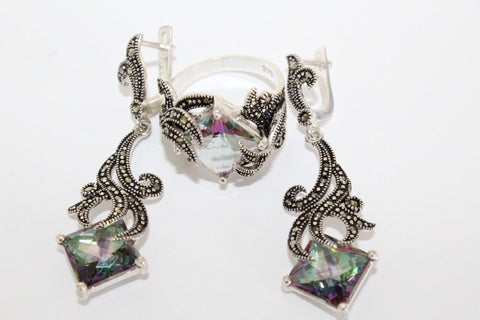 EARRINGS (green lab topaz): Length: 2.4 inch Weight: 12.1 grams.