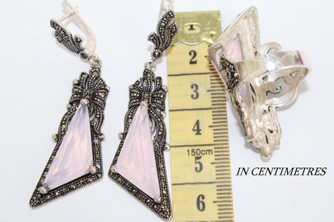 These high quality Armenian Silver Very long earrings feature a stunning bow detail and pink lab topaz stone, adding a touch of glamour to any outfit. Made with STERLING 925 silver and accented with shiny pale Marcasite stones, these earrings are perfect for engagements or any formal occasion.