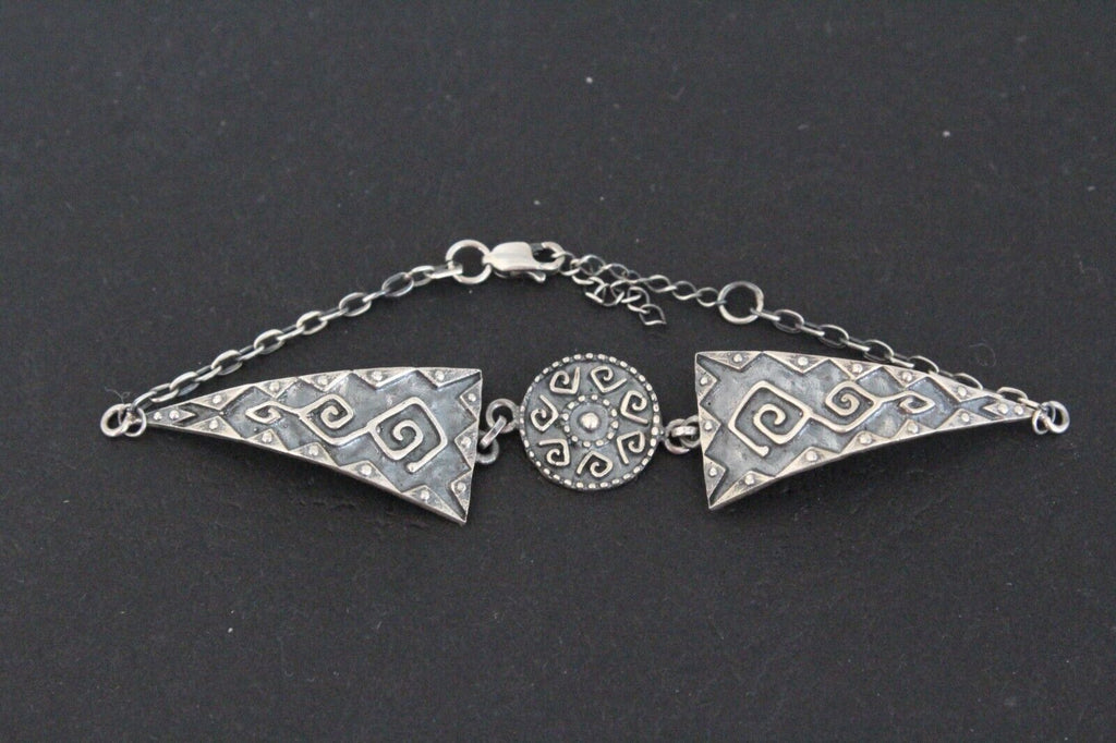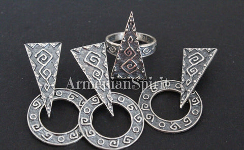 Experience the essence of Armenian culture with our ethnic sterling silver bracelet. The lightweight, boho-style design is perfect for everyday wear, while the traditional ornaments and patterns add a unique touch. Complete the look with matching earrings and a pendant, also available in the same ethno-inspired style.