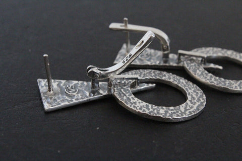 EARRINGS: Weight: 11.5 grams The length: 5 cm = 2 inches Diameter of the round approx. 1.2 inch = 3 cm