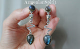 We make the jewelry of Sterling silver 925, which has very high quality. But please, note that silver always changes the color and becomes darker, because of several reasons: air humidity, using soap, skin contact and others. You can easily clean it with usual wet baking soda and wash with cold water. The jewelry will shine again!