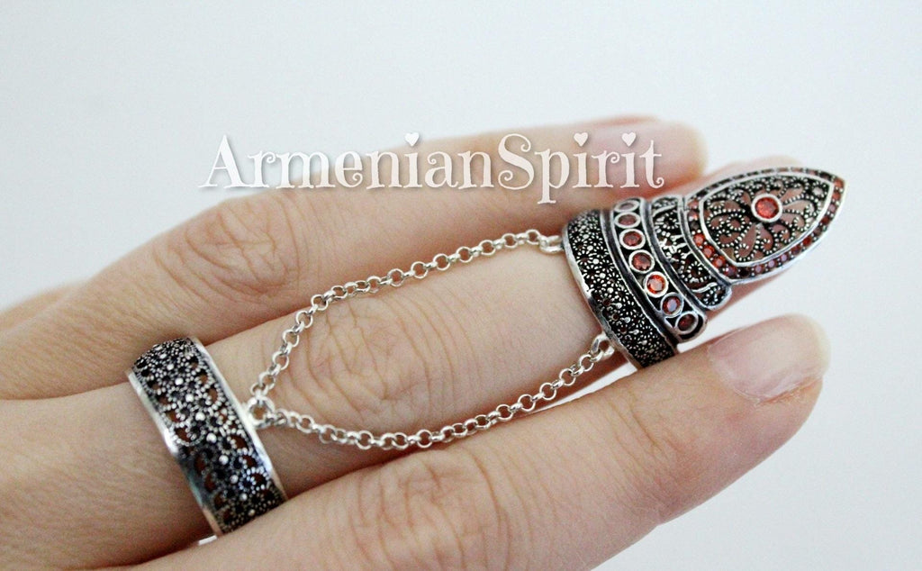 Discover the finest handcrafted sterling silver jewelry on Armenian Spirit. Our unique armor ring shield rings offer adjustable full-finger protection, inspired by ancient Armenian designs. Made with 925 sterling silver, our jewelry is both stylish and durable. Explore the world of high-quality jewelry with us.
