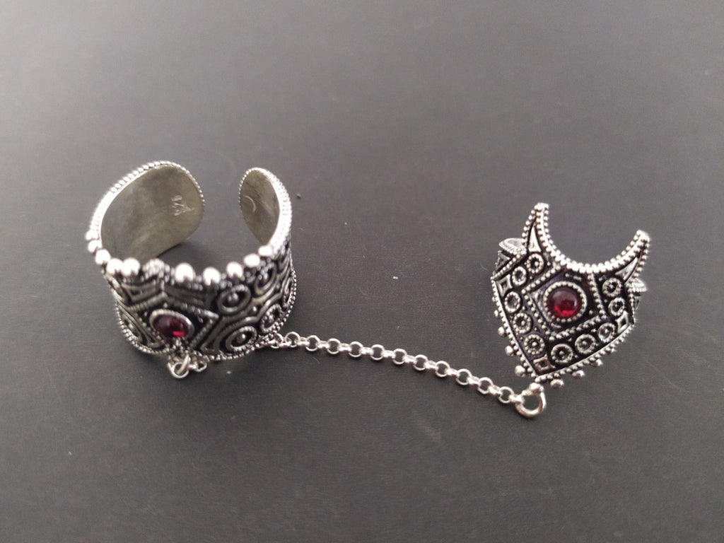 Discover this unique Armor ring, handmade with the finest Sterling silver 925 by the top seller at the best seller Armenian shop. Add a touch of Armenian culture and style to your look. Shop now and be amazed by its double Armenian design. Unleash your inner warrior with our Armor ring! Made with Sterling silver and adorned with lab red garnet stones, this double Armenian armored jewelry piece is a nod to heritage and culture. Embrace your roots and stand out with this full finger cover that adds a touch of sophistication to any outfit.