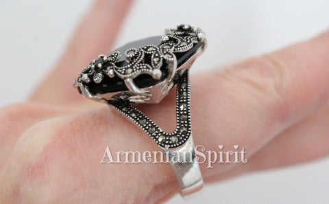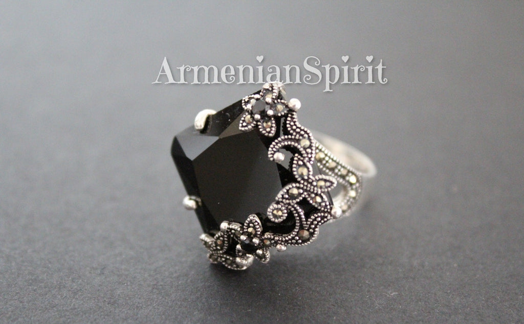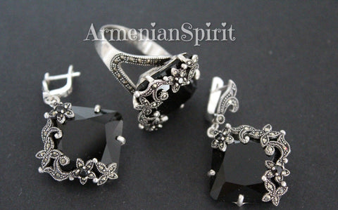 These black square stones are surrounded by sparkling marcasite and adorned with small, shiny flowers. Elevate your style with these timeless and intricately designed earrings. Elevate your style with our handpicked selection of high-quality jewelry from Etsy's top store for gifts. With free shipping worldwide and irresistible discounts, it's never been easier to find the perfect piece for any occasion. Trust in our reliable store for all your jewelry needs.