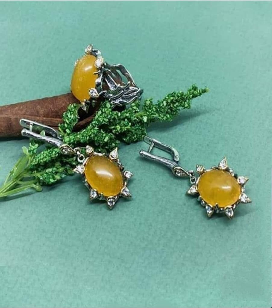 Sterling silver 925, natural gemstone: black onyx, yellow jadeite, purple amethyst