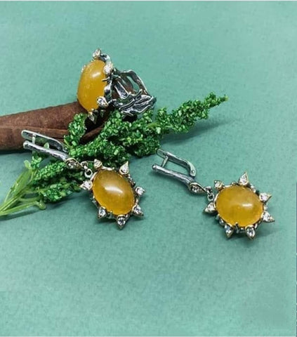 Elevate your elegance with this exquisite black onyx set crafted from sterling silver 925. Featuring a pair of refined earrings and a matching ring, this collection combines the deep allure of black onyx with the timeless shine of high-quality silver. Perfect for sophisticated occasions, these pieces add a touch of classic charm and modern grace to any ensemble.
