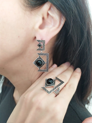 Discover the timeless elegance of Armenian Spirit's black onyx silver 925 ring. Handcrafted by skilled artisans in dark jewelry, this rectangular ring with traditional ornaments is a stunning addition to any collection. Elevate your style with high-quality, authentic Armenian craftsmanship. As a top-rated jewelry store on Etsy, our hypoallergenic pieces are perfect for those with sensitive skin. With free shipping worldwide, buying the best gifts for your beloved woman has never been easier and more affordable. Shop with confidence and trust in our expertise.