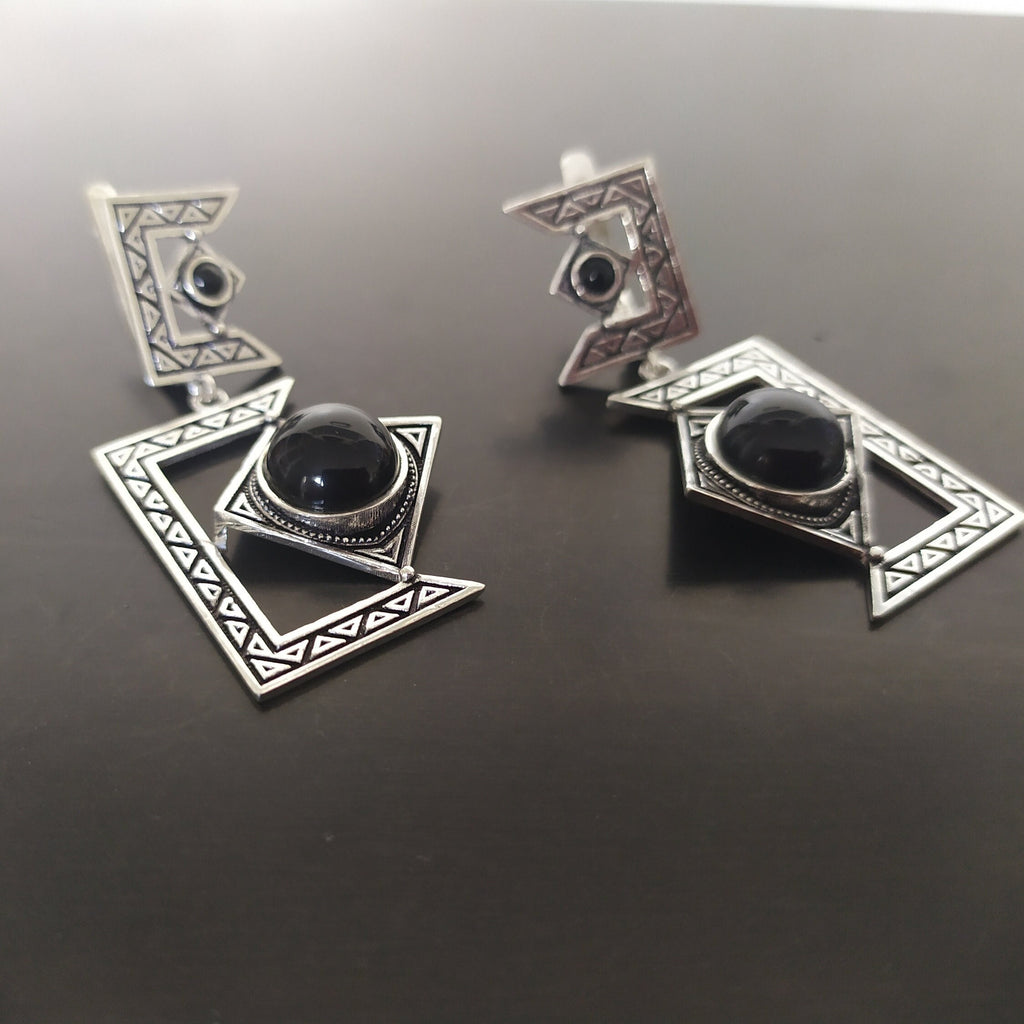 Expertly crafted in Armenia, this black onyx silver 925 jewelry set exudes elegance and sophistication. The rectangular geometric design adds a unique touch, making it a perfect addition to any collection. Handmade with care, these very long earrings are a stunning accessory for any occasion. Treat yourself to stunning silver jewelry also from the best seller on ebay- Armenian Spirit. Crafted with high-quality materials and hypoallergenic properties, our 925 stamped pieces are perfect for delicate skin. Enjoy free shipping worldwide and discounts, backed by excellent customer reviews. Choose Armenian Spirit for responsible and stylish jewelry.