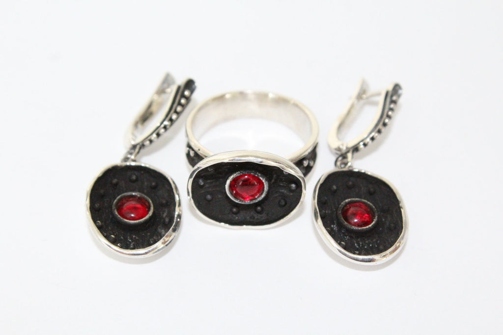 This elegant Black Red Ring crafted from 925 sterling silver features a striking oval red garnet stone. Its timeless design adds a touch of sophistication to any outfit, while the garnet’s deep red hue symbolizes passion and vitality. Perfect for daily wear or special occasions, this ring combines quality craftsmanship with meaningful beauty.