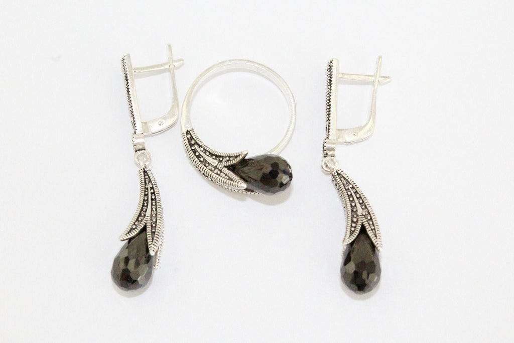 Discover the elegance of our black zircon earrings. These silver dangle earrings are perfect for any occasion, with a simple and delicate ring design that adds a touch of luxury to your outfit. Handmade with sterling silver, they make a perfect wedding accessory or a thoughtful gift.
