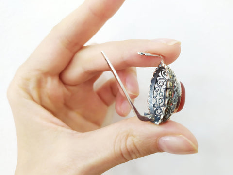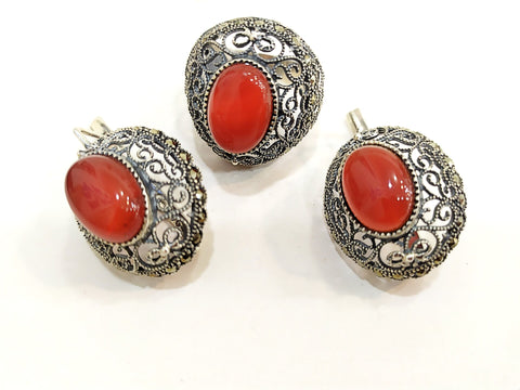 Elevate your style with this stunning Carnelian gemstone earrings and dome ring set. Handmade by Armenian artisans, each piece features intricate filigree and sparkling marcasite in sterling silver. High quality and unique, these pieces are sure to make a statement. Perfect for any occasion! Buy on Armenian Spirit and enjoy discounts!