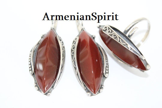 Discover our stunning Carnelian natural silver 925 jewelry set! Handmade in Armenia, this exquisite set features burnt orange gemstones that are not only beautiful but also believed to bring motivation and creativity. A perfect gift for women, this set is a must-have for any jewelry lover.