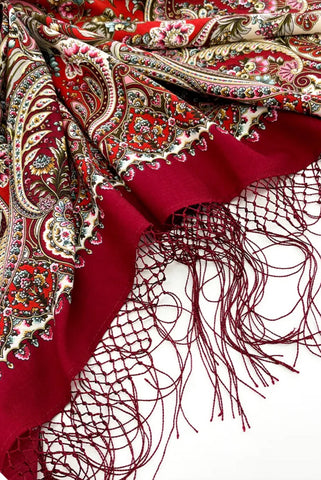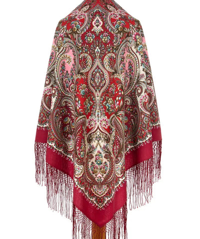 Wrap yourself in warmth and whimsy with this stunning 58" square scarf, where bohemian florals dance across rich reds, soft pinks, vibrant greens, and turquoise hues. Crafted from premium merino wool, this beauty feels luxuriously silky against your skin—no prickles, no irritation, just pure comfort. The delicate fringe adds a playful finishing touch, making it perfect for layering through winter months. Whether draped as a shawl or styled as a headwrap, this high-quality piece brings artistic flair and cozy elegance to every season.