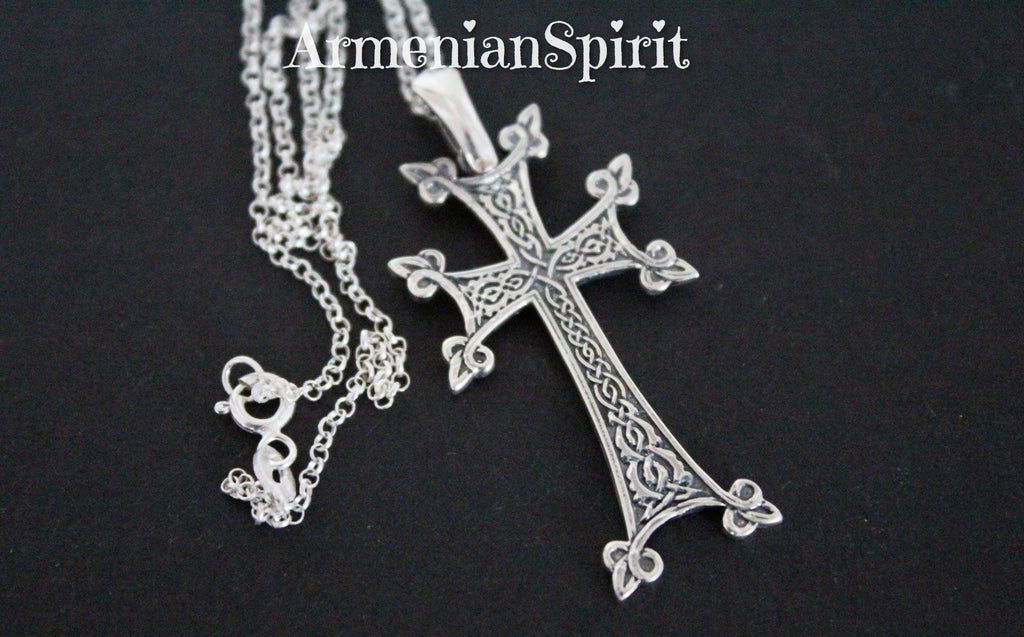 The cross is made of 925 sterling silver. This cross is more suitable for men, because it is a bit big in size. The Armenian cross, also called the Blooming one, is a kind of cross, which is distinguished by sprouted branches, expanded ends of the cross. Despite the fact that this cross is Armenian Apostolic, it is equally suitable also for other branches of the Christian Church: for Orthodox and Catholics. If you want to purchase a cross with a chain, then select from the options. Please note that the chain for the cross is also made of 925 sterling silver.