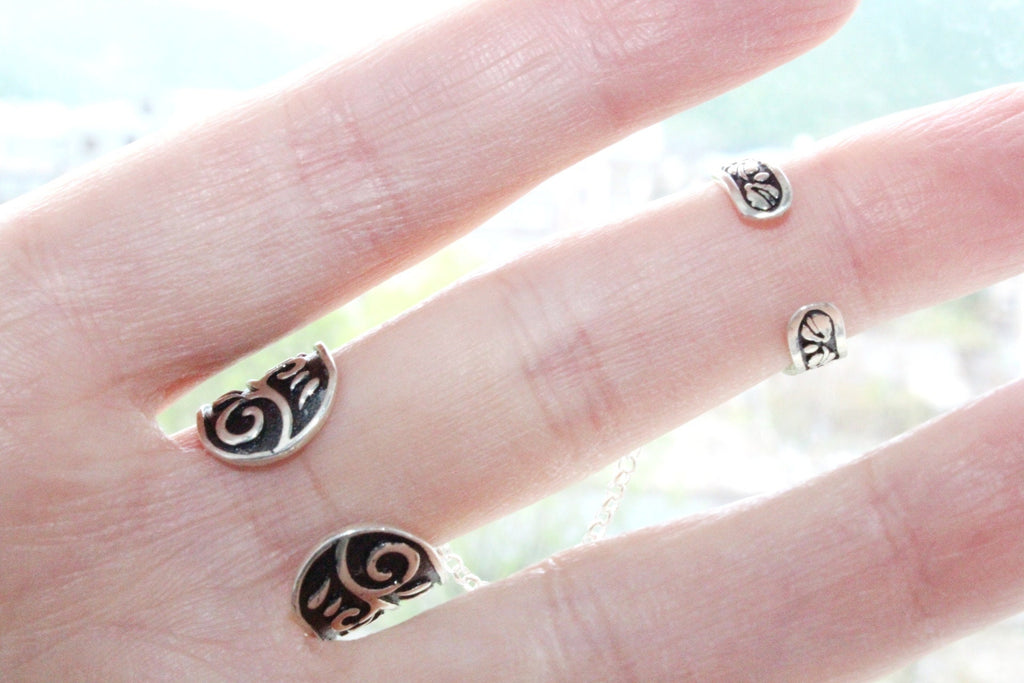 Upgrade your style with our stunning Double Ring Silver 925 Jewelry. Each piece is handcrafted in Armenia, featuring black onyx stones and adjustable rings with chains for a unique and designer look. Made with oxidized silver, our jewelry is both elegant and durable. The perfect addition to any woman's collection. Shop confidently at our reliable store on ebay for the best 925 stamped sterling silver jewelry on ebay. Enjoy free shipping worldwide and discounts as our way of showing customer care. Upgrade your style with our stunning collection today.