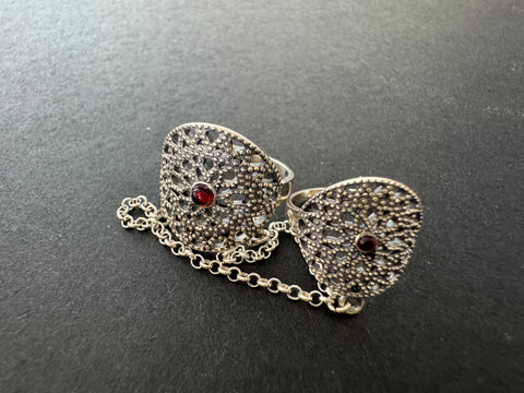 Discover the unique beauty of Armenian culture with our Double Ring Sterling Silver 925 Armenian Spirit. This traditional ethnic tribal jewelry showcases the rich history and first Christianity adopted country. Beautifully crafted with sterling silver, this double ring is a must-have for any jewelry collection.